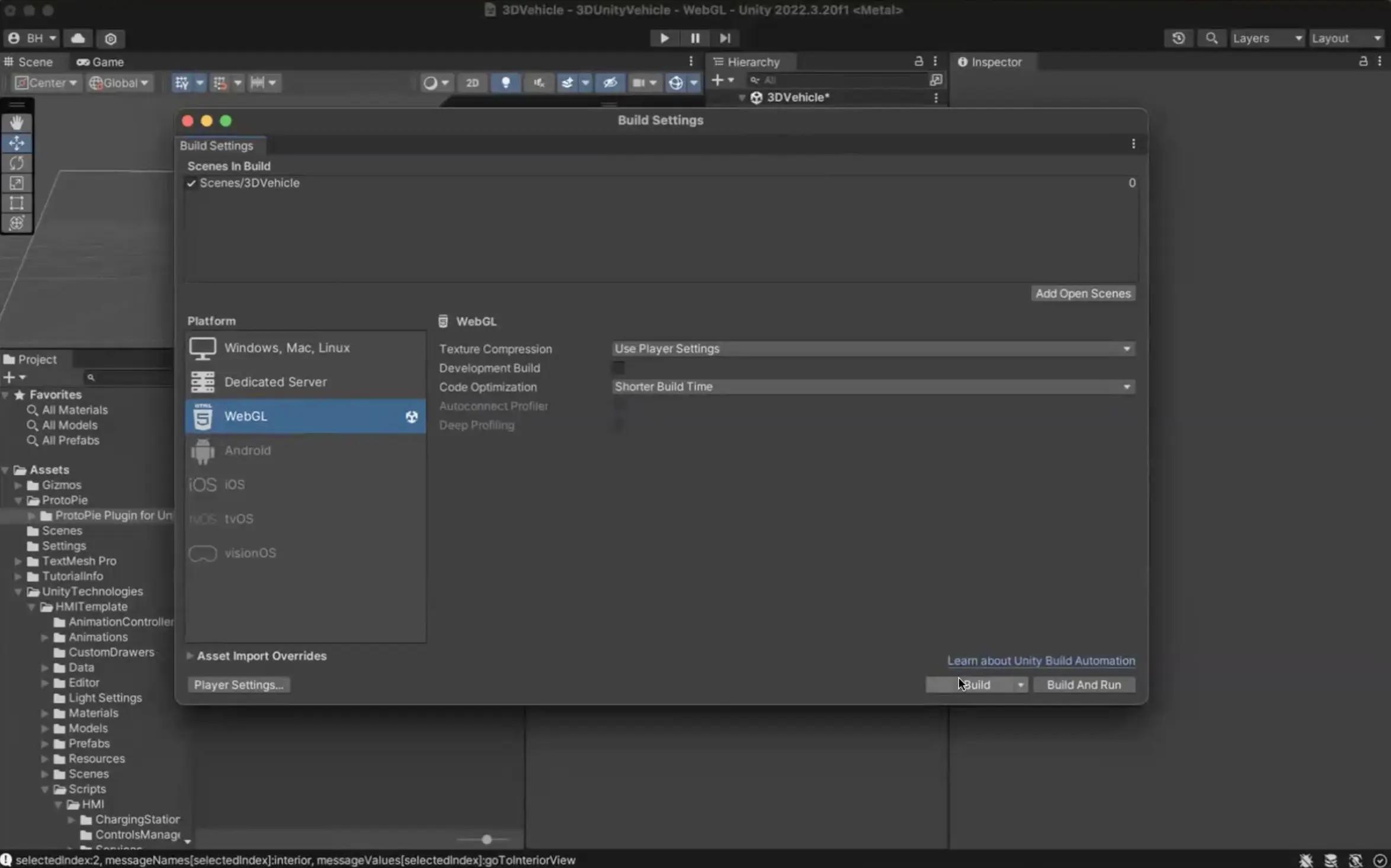 - 以适合在 ProtoPie Connect 中嵌入的 WebGL 格式导出你的 Unity 项目。