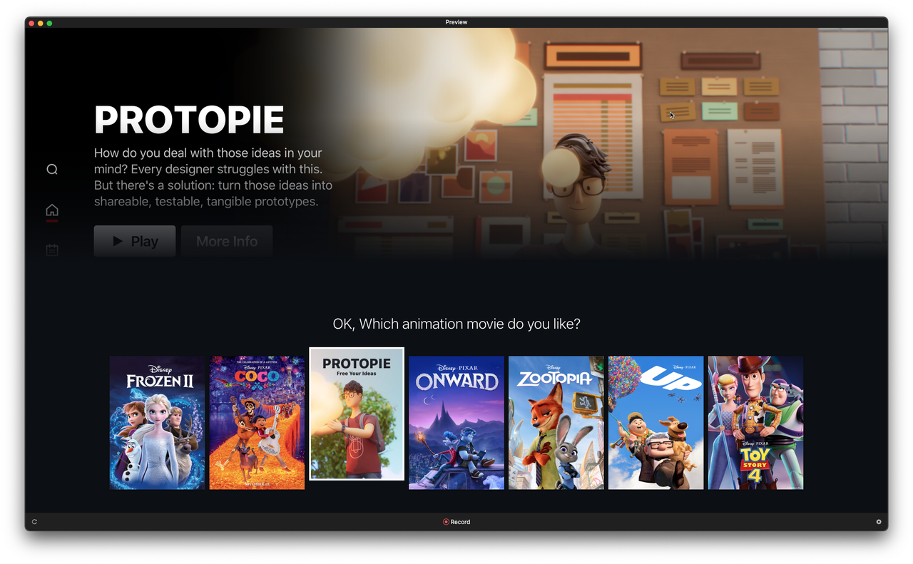 我们再切换到 ProtoPie Studio 中预览这个Pie。现在你只使用遥控器就可以对原型实现完全控制了——就像一台真的电视一样!