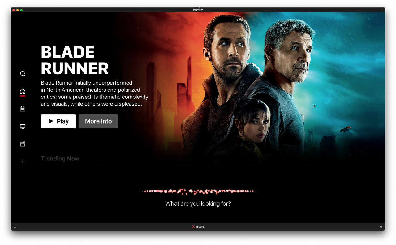然后说出 “animation” 来触发原型中的动作,进入下一个场景。接着使用遥控器来导航到名为 “ProtoPie” 的影片上并按下遥控上的 OK 按钮。