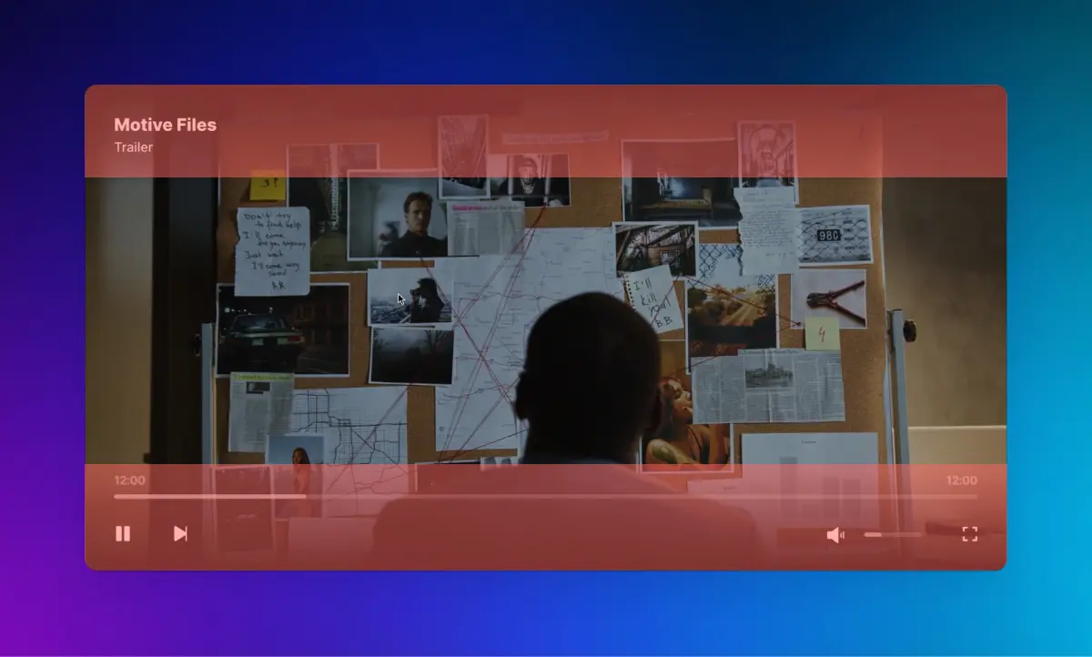 - 在视频播放器上悬停会触发一个覆盖层,展示不同的功能。