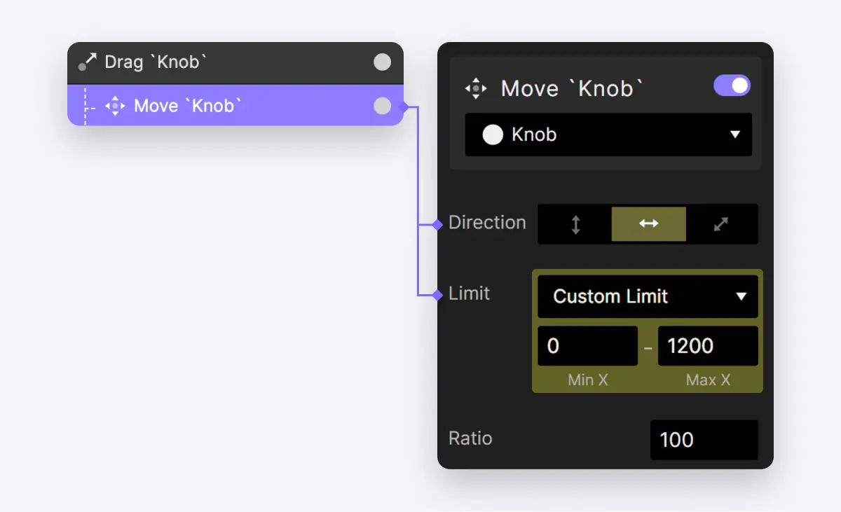 - 为 Knob 图层添加 拖动触发动作。
