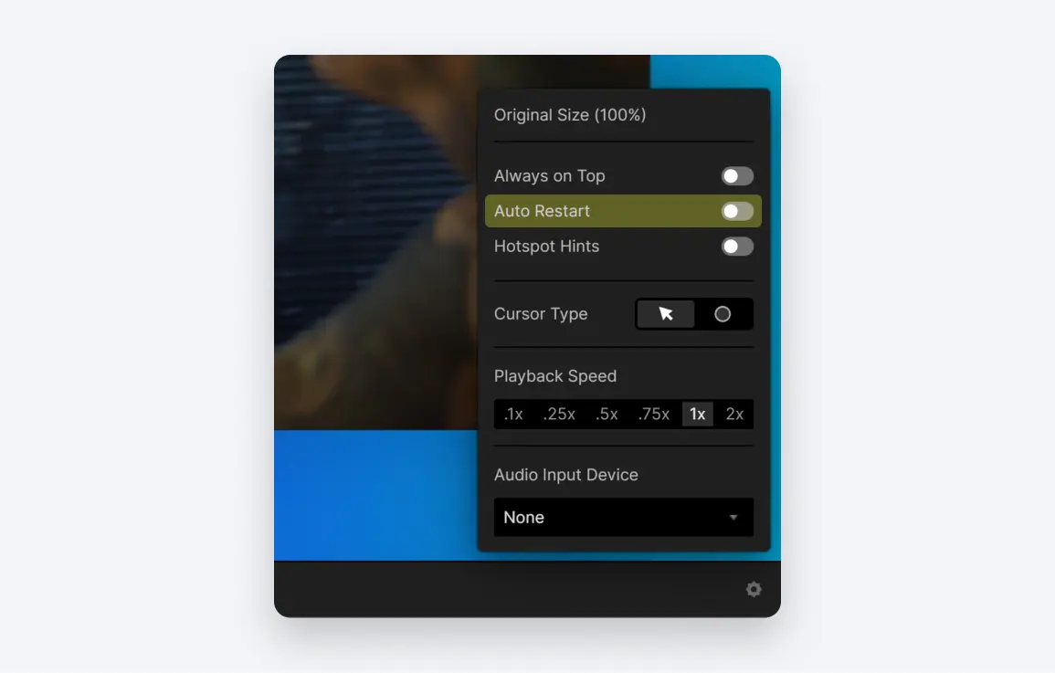💡 专业提示!ProtoPie在你进行编辑时会刷新预览窗口,这旨在帮助你方便地检查更新。然而,在处理媒体图层时,这可能导致频繁的刷新和声音重复播放。如果你更喜欢更受控制的体验,可以在预览窗口设置中禁用“自动重启”选项。