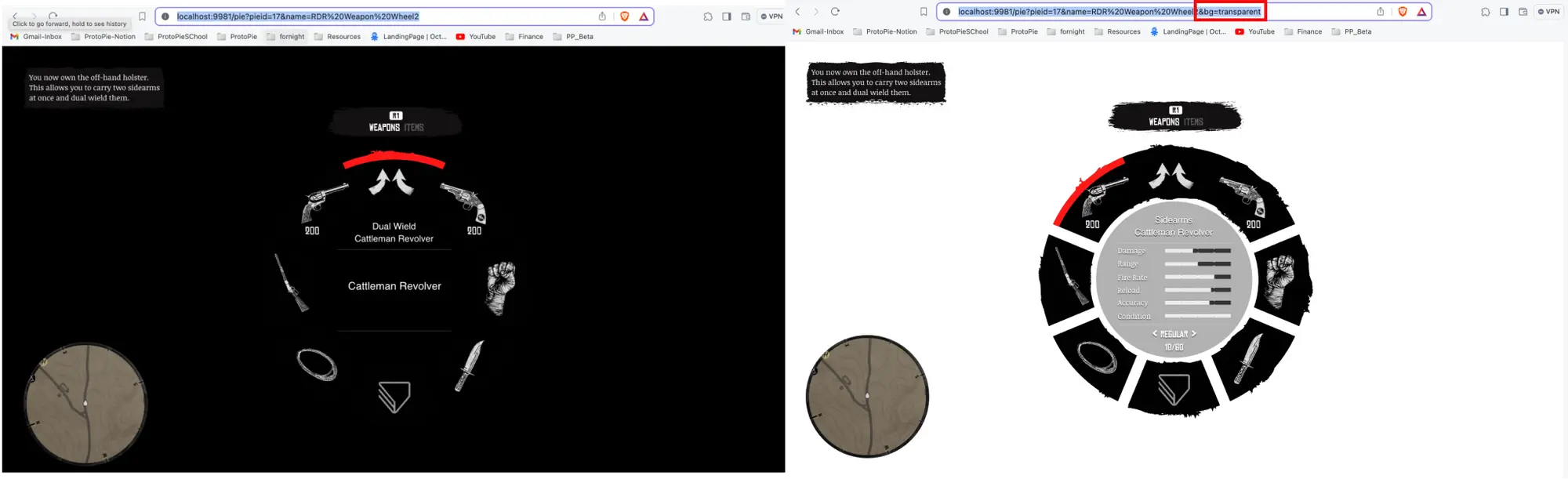 - 按下“播放”按钮在编辑器中运行游戏并测试集成。你的ProtoPie原型应该会在游戏环境中使用Web Browser小部件显示出来。