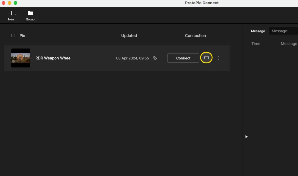 将您的原型(Pie)导入ProtoPie Connect界面。
