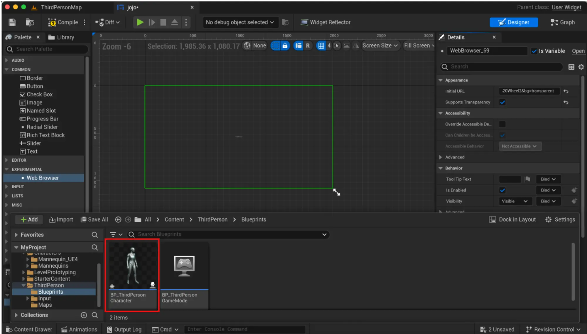 - 双击刚刚创建的小部件蓝图以打开它。