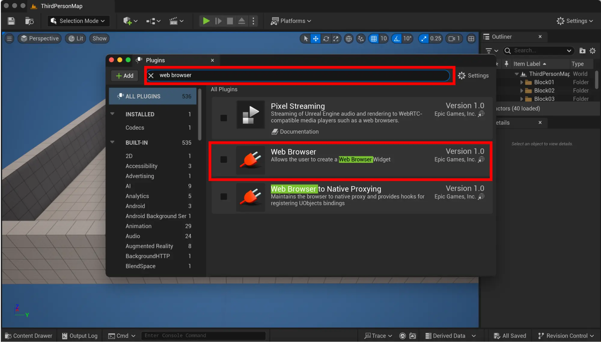 首先,在 Unreal Engine 中设置 Web Browser 插件。